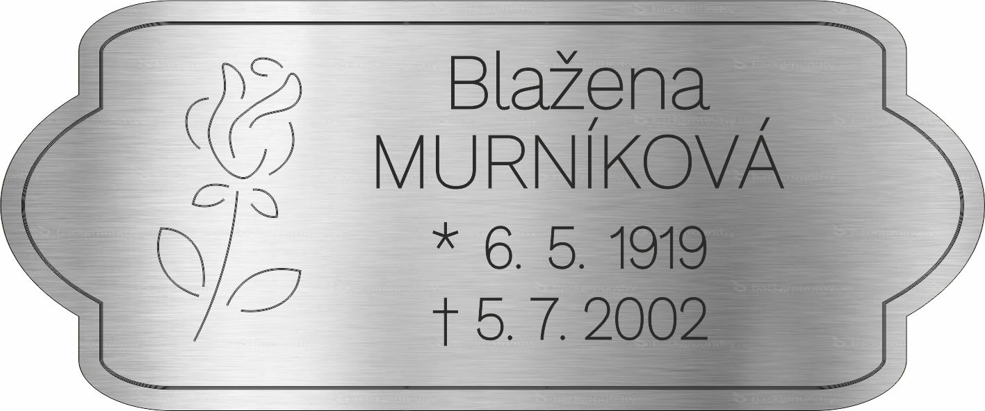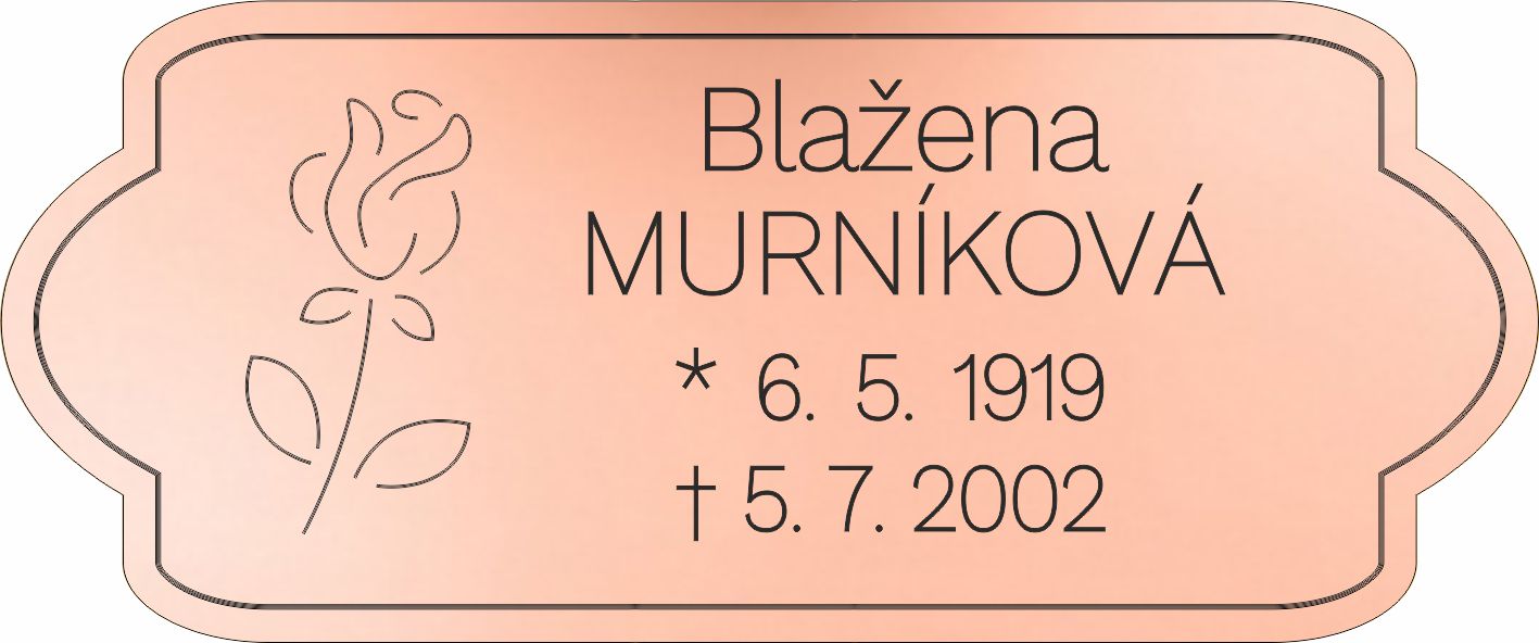 Smuteční cedulka cedulka gravírovaná na pomník, urnu. Zcela odolná počasí a věku. Gravírované cedulky neblednou, jsou stálé i na přímém slunci. Podrobnosti a odpovědi na časté dotazy zde
