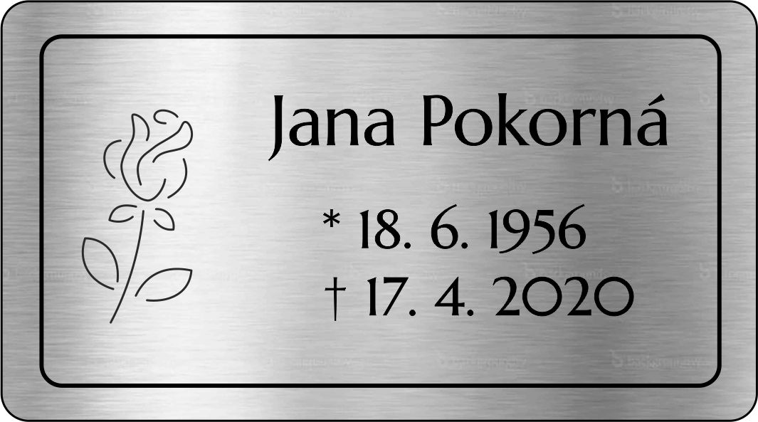 Smuteční cedulka gravírovaná na pomník, urnu. Zcela odolná počasí a věku. Gravírované cedulky neblednou, jsou stálé i na přímém slunci. Podrobnosti a odpovědi na časté dotazy zde