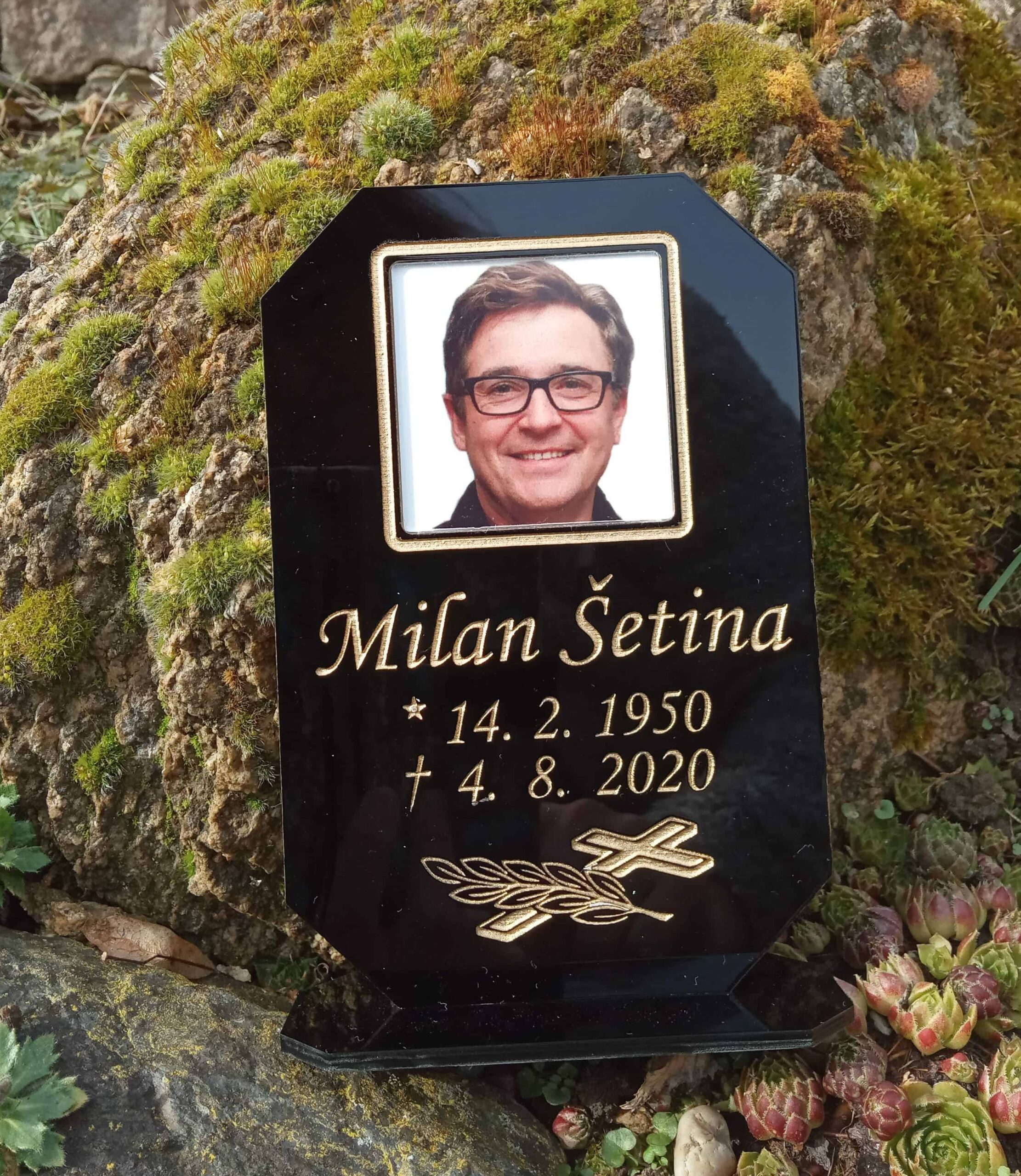 Vzpomínkový stojánek je vyroben z kvalitního umělého skla, které zaručuje jeho trvanlivost a odolnost vůči povětrnostním vlivům. Nápisy jsou vyryty do materiálu pomocí techniky gravírování, což zajišťuje trvalost a čitelnost. Písmo je ručně vybarveno zlatou nebo stříbrnou barvou, což dodává desce na kráse a zvýrazňuje její unikátnost. Stojánek je na přání možné vyrobit v jiném tvaru a rozměru. S tímto stojánkem si můžete být jisti, že bude reprezentovat vaši vzpomínku na zesnulého po mnoho let.